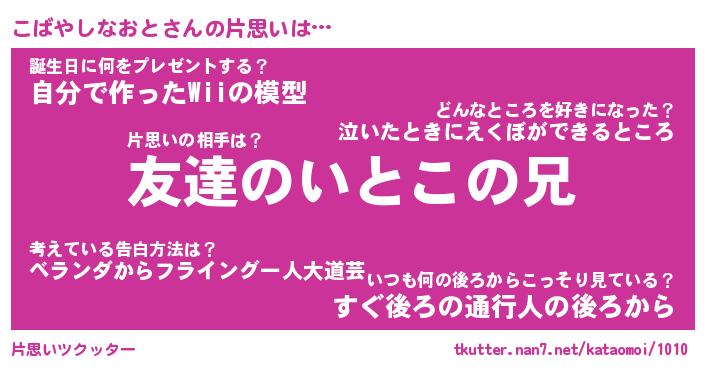 | 恥ずかしいあだ名 | 『プリティーこばやしなおと』『こばちん』 |