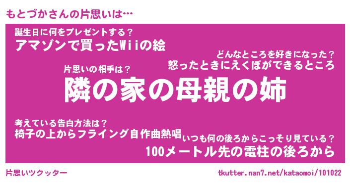 | 男性向けラノベタイトル風あだ名 | 『もとづかの憂鬱』 |