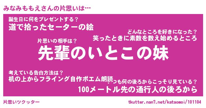 | 胡散臭い通販商品みたいなあだ名 | 『モテモテ間違いなし水晶球…その名も「みなみももえ」』 |