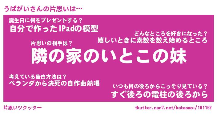 | 胡散臭い通販商品みたいなあだ名 | 『モテモテ間違いなし水晶球…その名も「うばがい」』 |