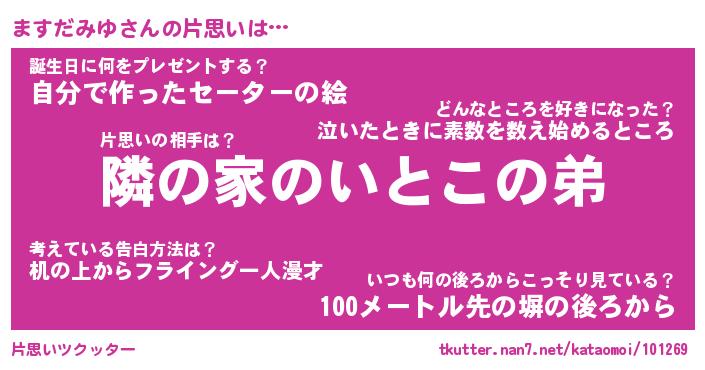 | ヘコむあだ名 | 『ますもー』『つくし』『ますっ子』 |