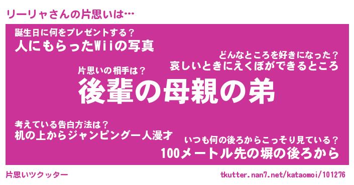 | ツイッター | リーリャさんのツイッターID『namakemono_man』 |