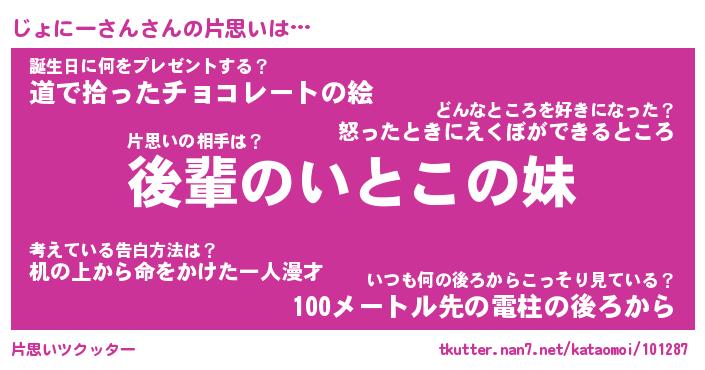 | ヘコむあだ名 | 『じょもー』『豆乳』『じょっぺ』 |