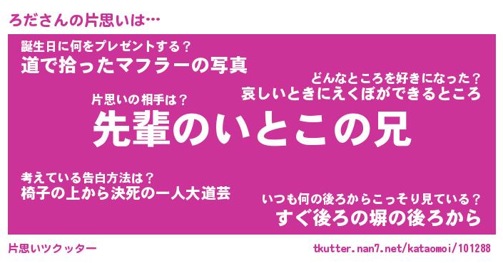 | ヘコむあだ名 | 『ろだにゅー』『つくし』『ろだお』 |