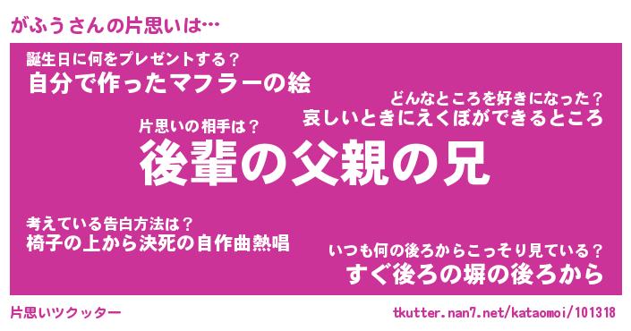 | ヘコむあだ名 | 『がふにゅー』『つくし』『がふっぺ』 |