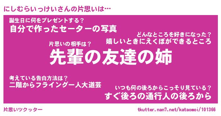 | 男性向けラノベタイトル風あだ名 | 『にしむらいっけいの憂鬱』 |