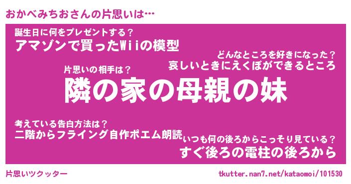 | 男性向けラノベタイトル風あだ名 | 『おかべみちおの憂鬱』 |