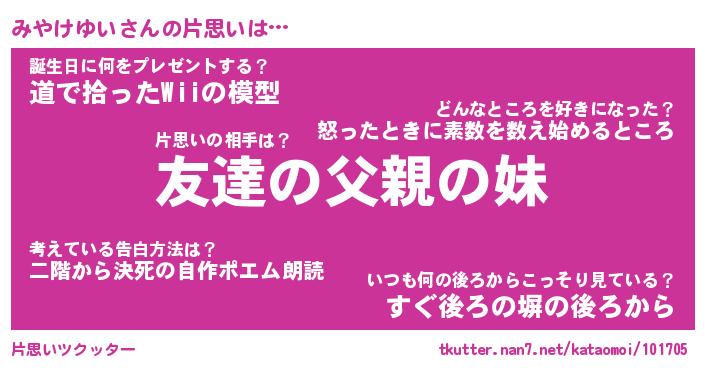 | ヘコむあだ名 | 『みやふぇ~』『豆乳』『みや太郎』 |