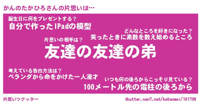 | ヘコむあだ名 | 『かんっふぃ~』『つくし』『かんお』 |