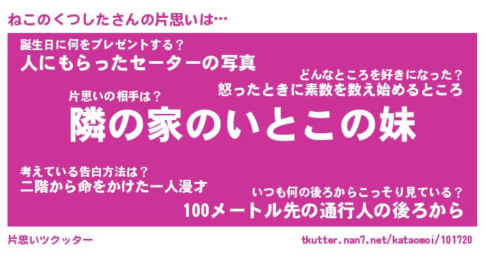 | 男性向けラノベタイトル風あだ名 | 『ねこのくつしたの憂鬱』 |