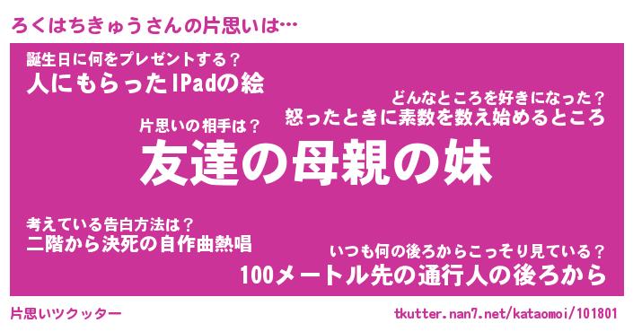 | ヘコむあだ名 | 『ろくにー』『酢こんぶ』『ろく太郎』 |
