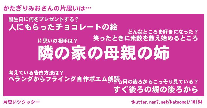 | 胡散臭い通販商品みたいなあだ名 | 『必ず成功するブレスレット…その名も「かたぎりみお」』 |
