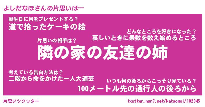 | 伝説のあだ名 | 『伝説のスナイパーよしだなほ』 |