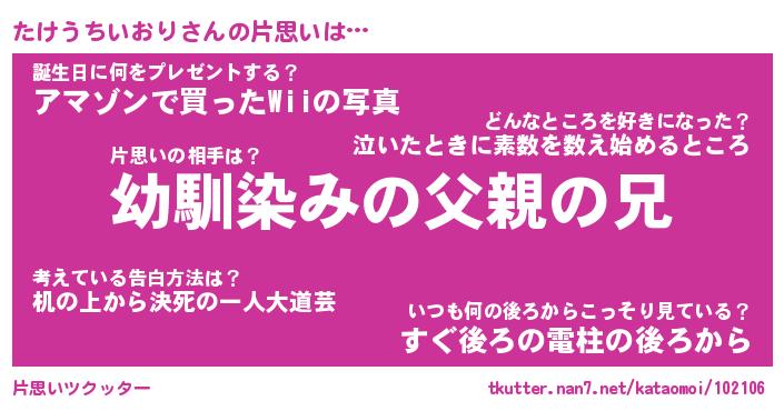 | 男性向けラノベタイトル風あだ名 | 『たけうちいおりの憂鬱』 |