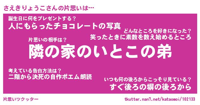 | 胡散臭い通販商品みたいなあだ名 | 『モテモテ間違いなし水晶球…その名も「さえきりょうこ」』 |