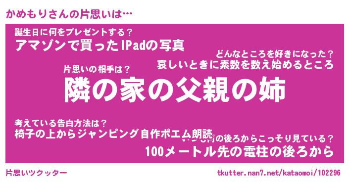 | 意味不明あだ名 | 『ペロリンかめもり』『永久保存かめもり』 |