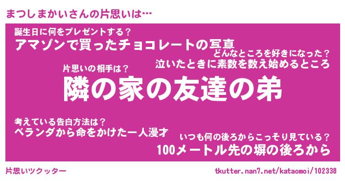 | 胡散臭い通販商品みたいなあだ名 | 『モテモテ間違いなし霊験あらたかなお札…その名も「まつしまかい」』 |