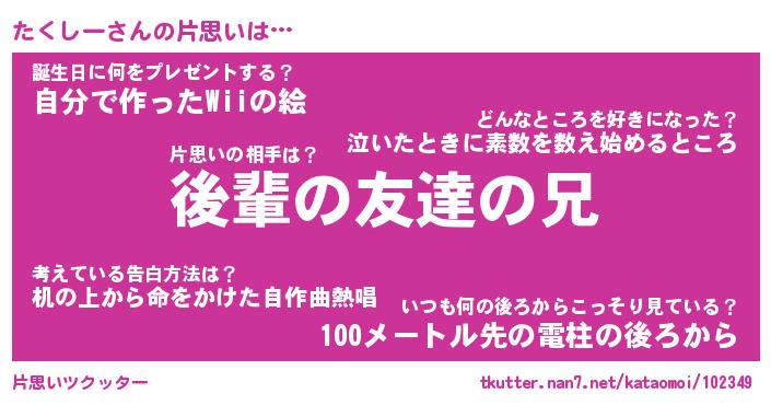 | ヘコむあだ名 | 『たくっふぃ~』『つくし』『たくを』 |