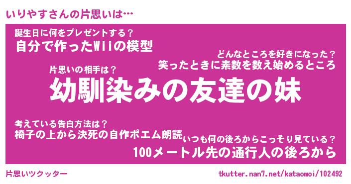 | ヘコむあだ名 | 『いりっふぃ~』『牛乳』『いり太郎』 |