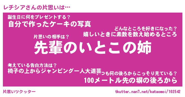 | 意味不明あだ名 | 『ペロリンレチシア』『永久保存レチシア』 |