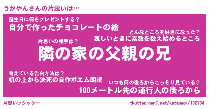 | ヘコむあだ名 | 『うかふぇ~』『つくし』『うか太郎』 |