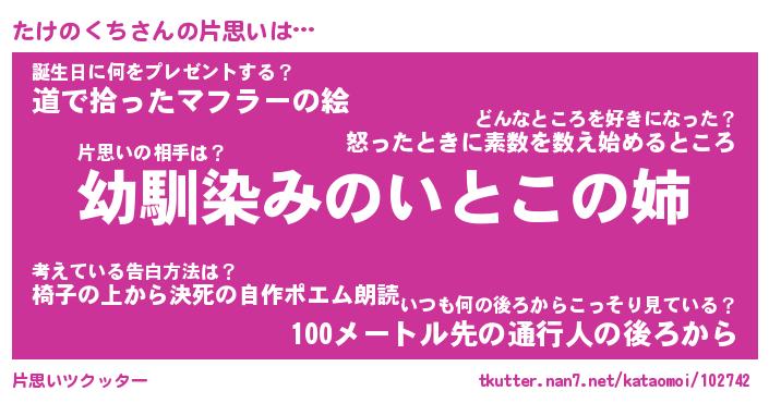 | 男性向けラノベタイトル風あだ名 | 『たけのくちの憂鬱』 |