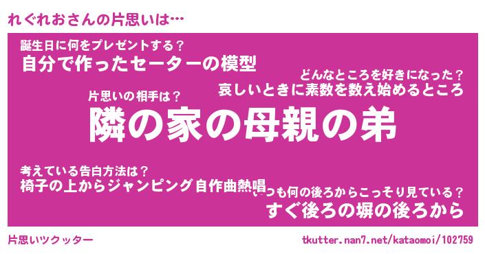 | ヘコむあだ名 | 『れぐふぇ~』『豆乳』『れぐっ子』 |