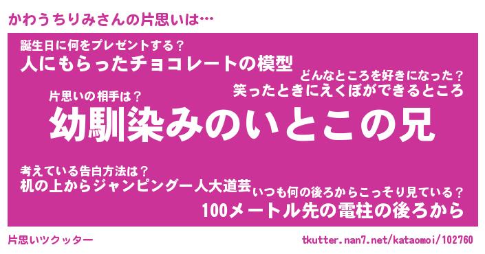 | 男性向けラノベタイトル風あだ名 | 『かわうちりみの憂鬱』 |