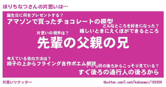 | 胡散臭い通販商品みたいなあだ名 | 『モテモテ間違いなし水晶球…その名も「ほりちなつ」』 |