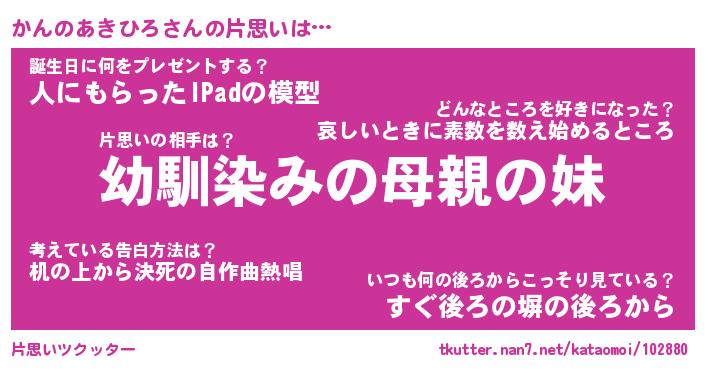 | 男性向けラノベタイトル風あだ名 | 『かんのあきひろの憂鬱』 |