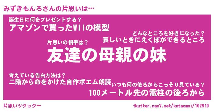 | 男性向けラノベタイトル風あだ名 | 『ミズキモンロアートオンライン』 |
