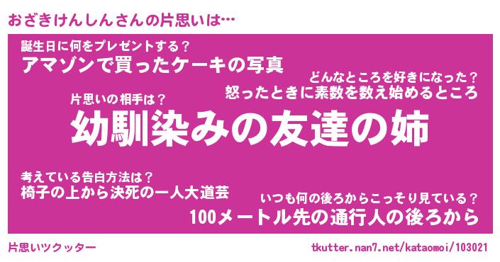 | 男性向けラノベタイトル風あだ名 | 『おざきけんしんの憂鬱』 |
