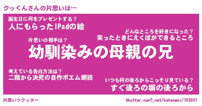 | 胡散臭い通販商品みたいなあだ名 | 『必ず成功するブレスレット…その名も「クッくん」』 |