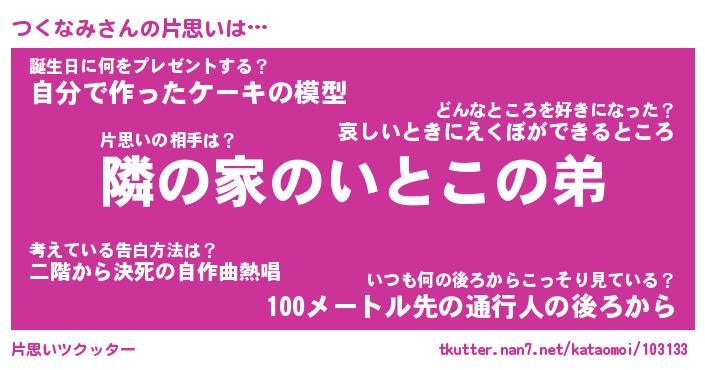 | ヘコむあだ名 | 『つくもー』『牛乳』『つくっちょ』 |