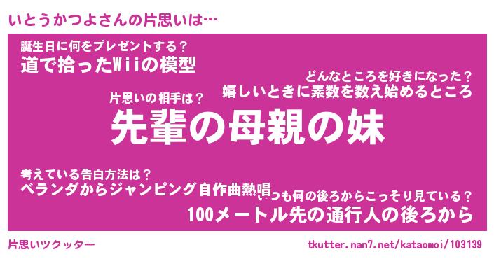 | ヘコむあだ名 | 『いとにー』『牛乳』『いとお』 |