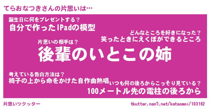 | ヘコむあだ名 | 『てらもー』『つくし』『てらを』 |