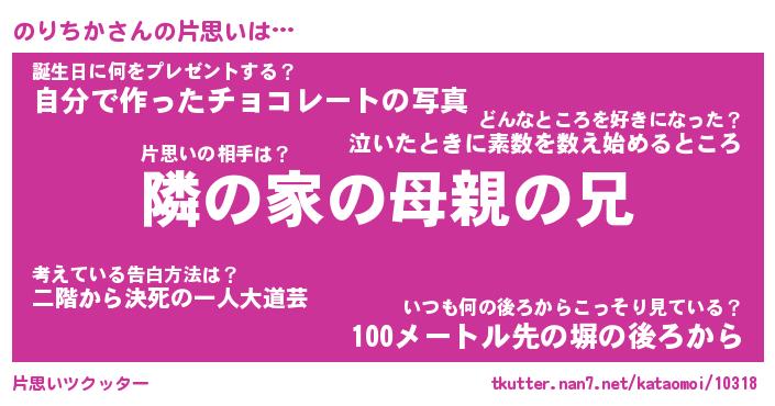 | ヘコむあだ名 | 『のりにー』『なまこ酢』『のりを』 |