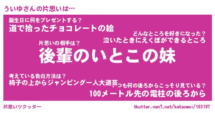 | 意味不明あだ名 | 『ペロリンういゆ』『ういゆフォーエバー』 |