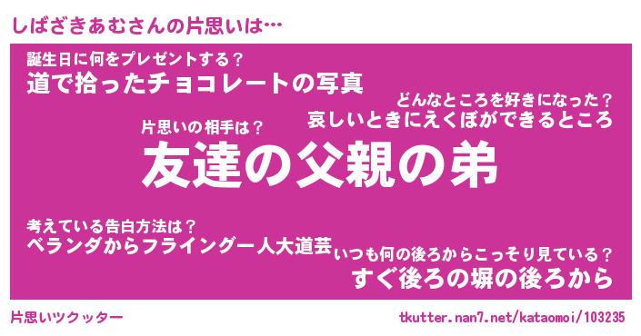 | 女子向けラノベタイトル風あだ名 | 『誰かこのしばざきあむを説明してください! ~契約から始まるウェディング~』 |