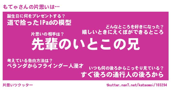| 男性向けラノベタイトル風あだ名 | 『もてゃの憂鬱』 |