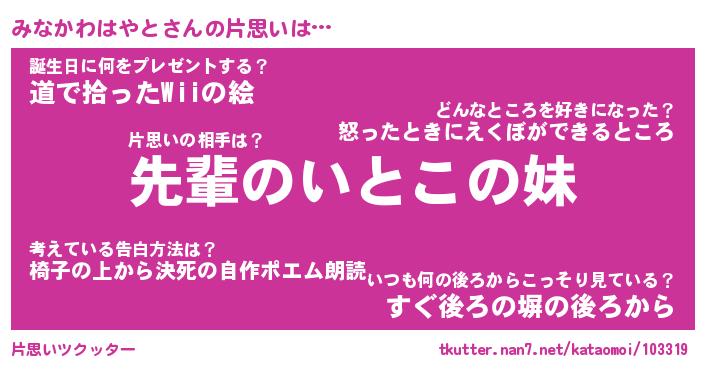 | 胡散臭い通販商品みたいなあだ名 | 『モテモテ間違いなし水晶球…その名も「みなかわはやと」』 |