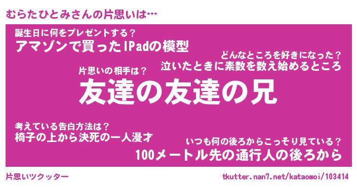 | 伝説のあだ名 | 『封印されしスナイパーむらたひとみ』 |