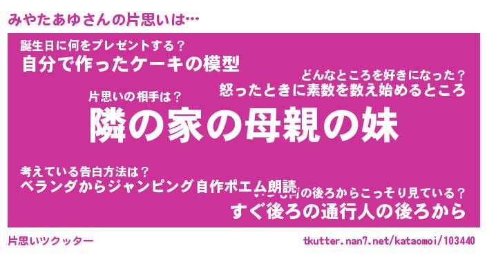 | ファンタジー風あだ名 | 『ミヤフェル』『エターナルミヤタアユー』 |