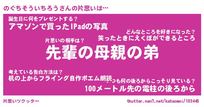 | 胡散臭い通販商品みたいなあだ名 | 『モテモテ間違いなしブレスレット…その名も「のぐちそういちろう」』 |