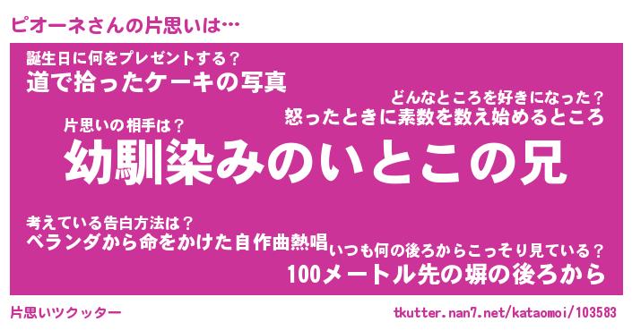 | ヘコむあだ名 | 『ピオにゅー』『豆乳』『ピオっ子』 |
