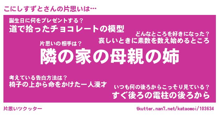| 胡散臭い通販商品みたいなあだ名 | 『必ず成功するブレスレット…その名も「こにしすずと」』 |