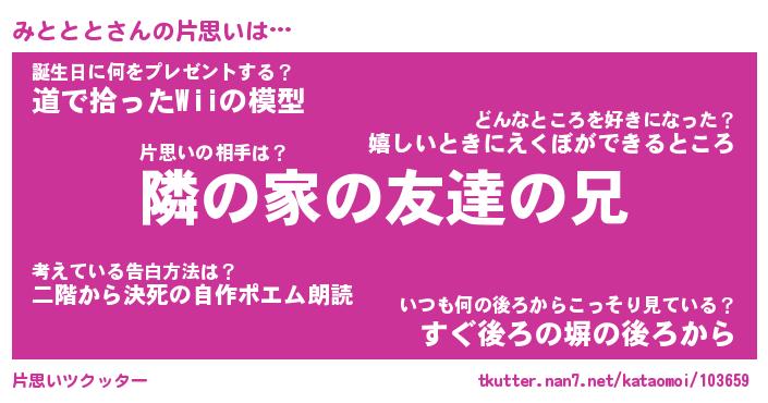 | 男性向けラノベタイトル風あだ名 | 『みとととの憂鬱』 |