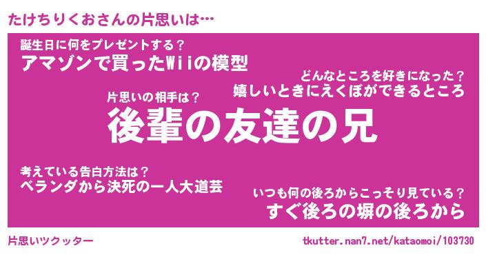| ヒーロー風カッコイイあだ名 | 『スーパータケチリクオ』『幻影騎士タケ』 |