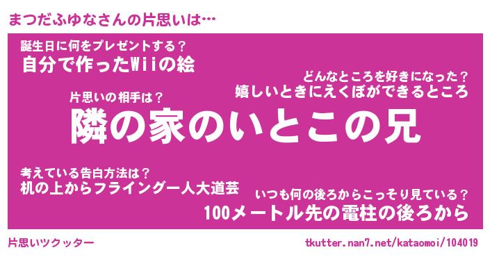 | 胡散臭い通販商品みたいなあだ名 | 『必ず成功する霊験あらたかなお札…その名も「まつだふゆな」』 |