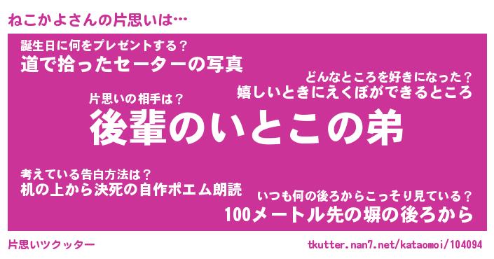 | 2回繰り返すあだ名 | 『ねこねこ』『ねねここ』『いそいそ』 |
